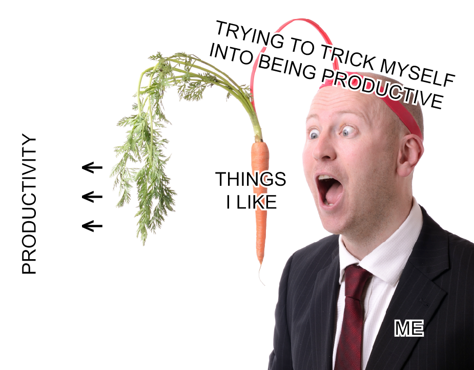 I’ve spent so many years of my life trying to figure out how to dangle a carrot in front of my own face, without me knowing that A) I put it there, and therefore B) I know how to get it. If I had a dime for every time I said to myself, “If I _______, I’ll let myself _______.” It’s so stupid, and I know it. Also, I’m kind of regretting the bdsm meme because now you’re just going to be thinking dirty thoughts throughout the rest of the blog post. Maybe this dumb dude will help: